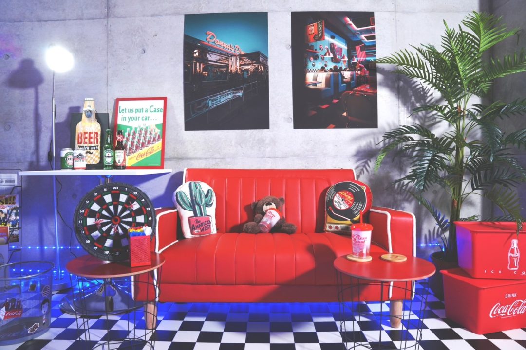 入庫もOKな広いガレージ、レトロなアメリカンダイナー、豊富なカラーバックがあります。